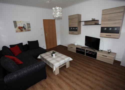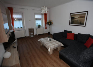 Unsere „Ferienwohnung 2“ bietet Platz für bis zu 4 Personen.Sie befindet sich im Erdgeschoss und verfügt auf 55m2 über …- Wohnzimmer * Couch mit Schlaffunktion * Sessel mit Schlaffunktion * 43“ Samsung Smart TV * Wohnwand